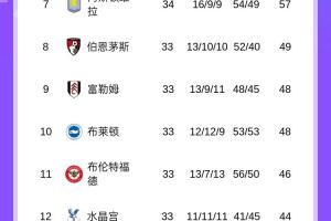 最新积分榜,曼城先赛积61分暂升第3,维拉输球仍居第7。